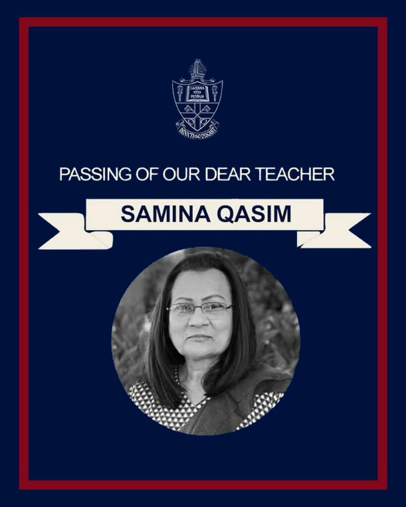 It is with deep sorrow that we share the sudden and untimely passing of our dear colleague, Samina Qasim, Jubilarian Teacher in the Kindergarten Section.