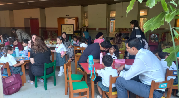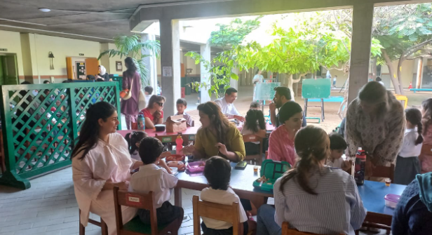 Children invited a parent to join them for breakfast around the fresh, green courtyard, sharing home-brought meals and cheerful conversations. It was heartening to see so many families—especially Dads—take part in the experience.