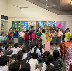 But it wasn’t just about acting – the students also showcased their creativity by crafting props and scenery, all while working closely with their teachers. They put in lots of effort to learn their lines, nail their cues, and make their performances shine. The results? Absolutely entertaining! Their plays were enjoyed by their classmates, Year I children, and teachers from KG and JS.