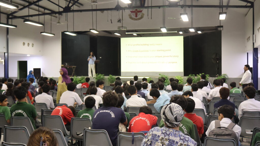 KGS alumna Malaikah Sakrani, Director at EduGo, returned to her roots to speak to our Year 8 & 9 students about why profile building begins now—not later.
