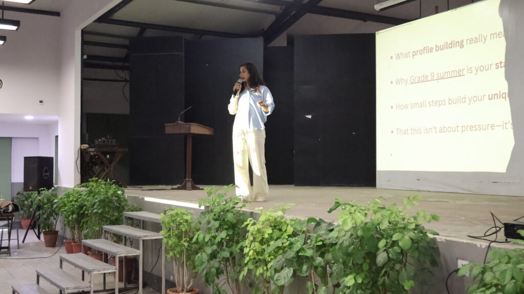 She shared her journey from these very classrooms to building her own company, emphasising that standout applications are built on consistent, intentional work outside the classroom—but none of it matters without strong grades. Academics are the non-negotiable base.